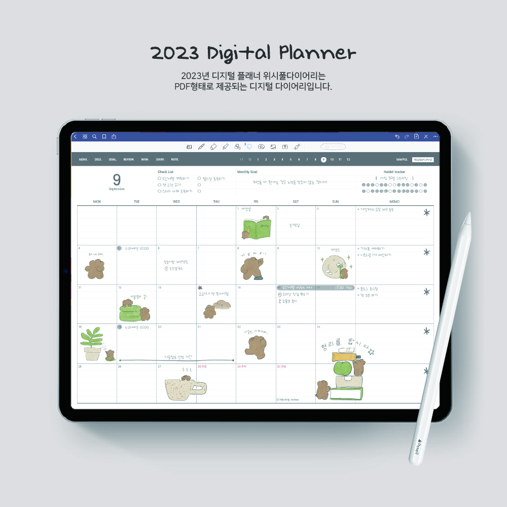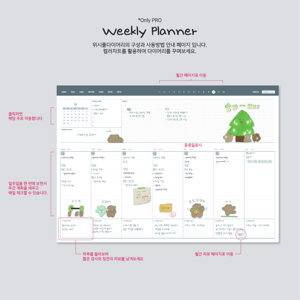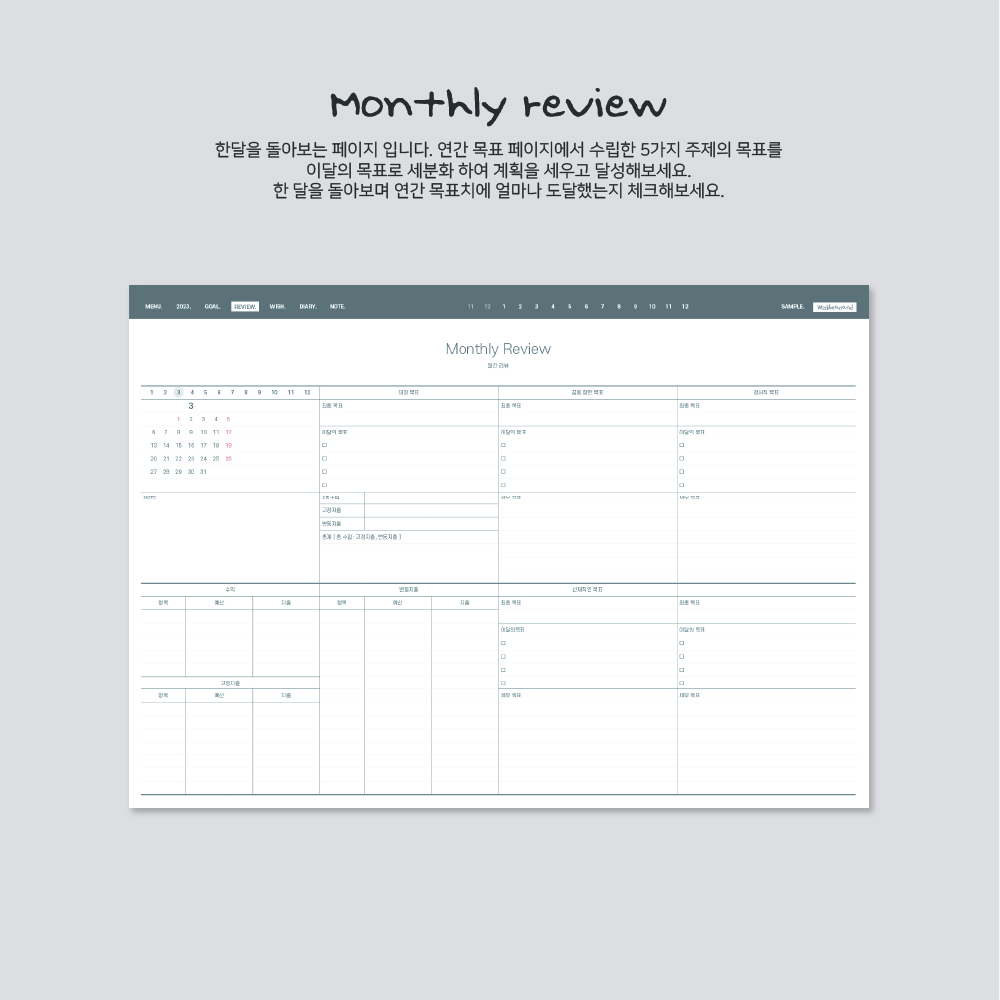 월간페이지의 '먼슬리리뷰' 버튼이 월간 메모 마지막 주로 이동하였습니다.